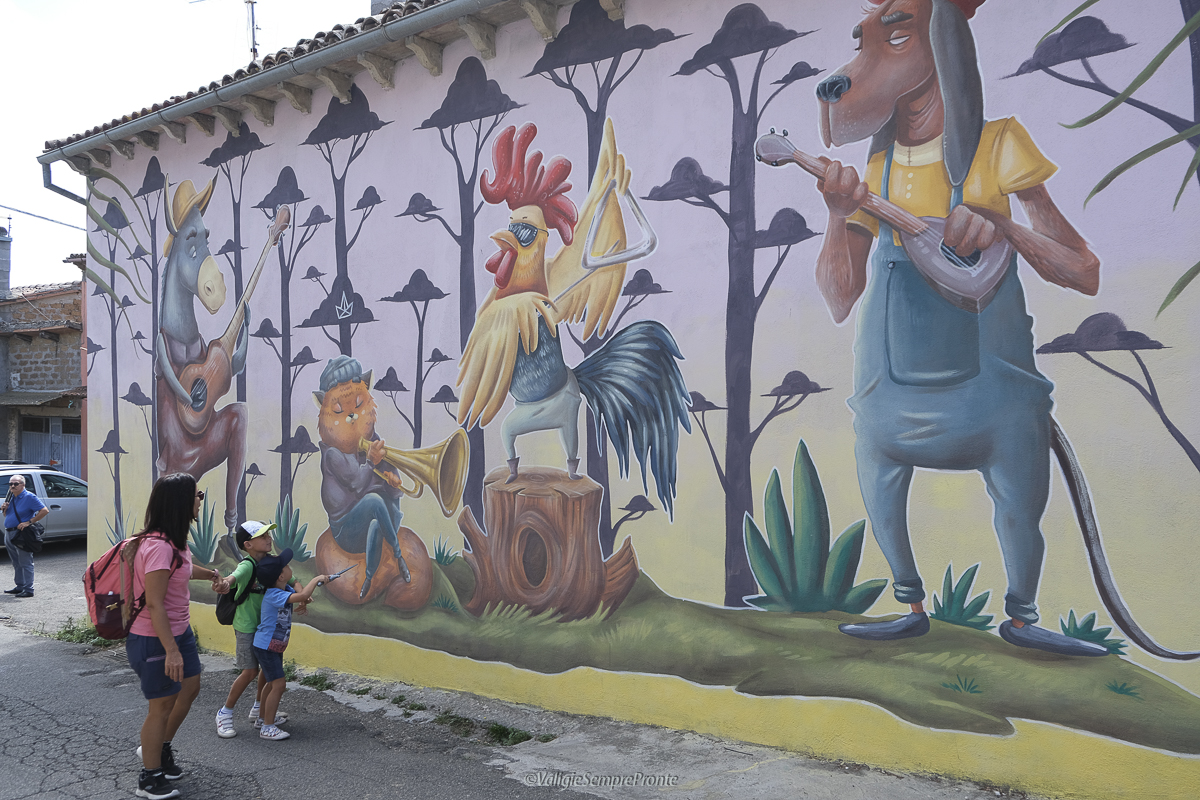 L’artista Tina Loiodice è stata la prima ad arrivare qui a Sant’Angelo e subito se ne è innamorata! Ha già realizzato 11 murales… secondo voi si fermerà qui? Pare che per fare accettare la sua arte dagli abitanti abbia inserito i volti di alcuni bambini del paese nelle sue opere…bella idea vero?