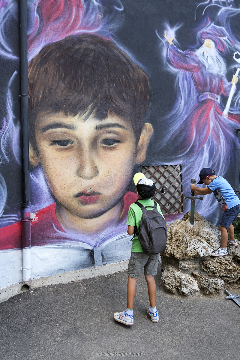 Anche se esiste la mappa delle opere da vedere non c’è un percorso prestabilito da seguire quindi fatevi guidare dal bambini. Nel paese girano pochissime macchine, dando ai bambini la libertà di muoversi come vogliono. Dategli la possibilità di curiosare come preferiscono, saranno più affascinati dalle loro scoperte diventando loro stessi i protagonisti delle loro fiabe preferite.